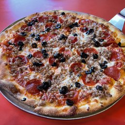 This neighborhood pizza joint has good pizza - nothing special or fancy but just good, standard pizza. It is a more rustic interior with not too special decor, but a more casual family vibe. There are a lot of families with young children that come by. They do take out and delivery in the area. And their service is fairly quick if you want to order a pizza to go while you wait (about 15 mins).